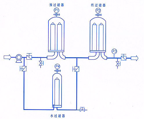 水经过该过滤器后对预过滤器进行反向清洗,而对除菌过滤器进行正向清洗,用以提高过滤系统的使用寿命,过滤精度1um,聚丙烯或硼硅酸盐材质的折叠滤芯。